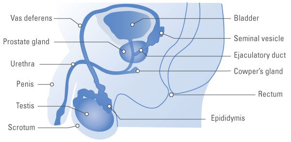 Egy oldalról mutatja a fő részeit a férfi reproduktív rendszer