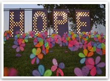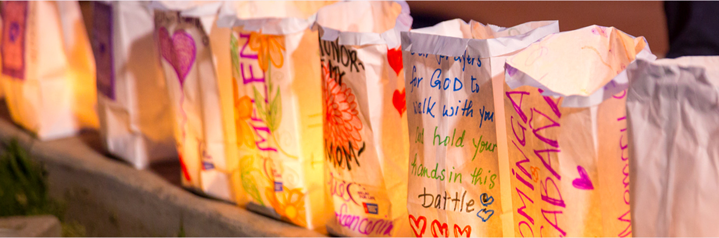 Emlékszünk elveszett szeretteink, hogy rákos, illetve azok tiszteletére, a kezelés szentelik, Luminaria táskák. Minden Luminaria táska személyre szabott egy nevet, vagy üzenetet, majd sötétedés után kivilágítva minden Relé Az Élet eseménye.